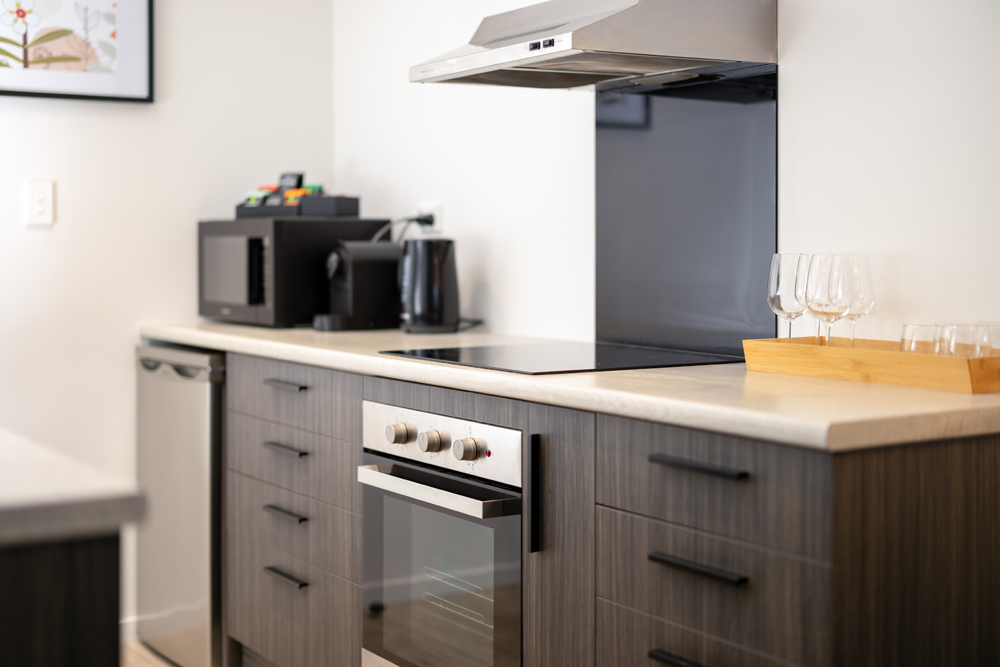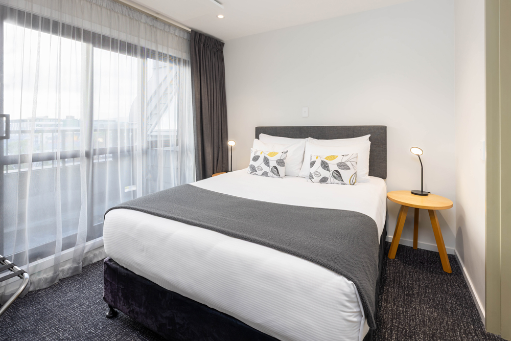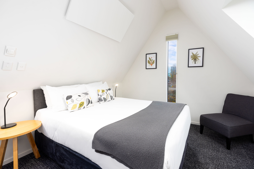 Our two bedroom apartments have one queen bed and two single beds, with private bathroom and toiletries provided.